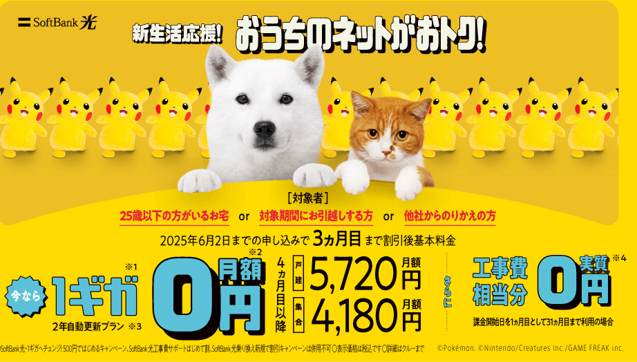 GMOとくとくBBの窓口なら、キャンペーンによって工事費が実質無料になるのに加えて、基本料金の割引特典が適用されます。
